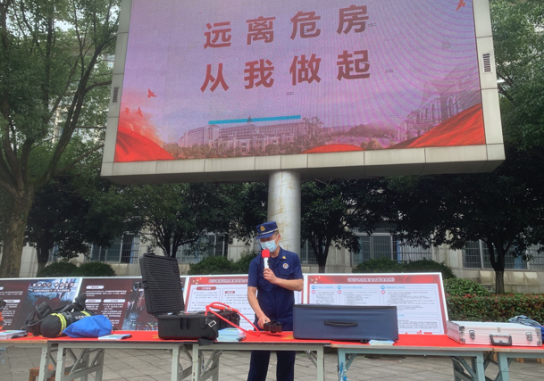 湖南富安消防培训学校的周芳明教官从4.29事故入手,为大家讲解了识别危房的常识、遭遇垮塌事故时的自救方法、应急逃生方法、灭火器、自救式呼吸器的使用方法;虹桥消防站消防员为大家介绍了应急救援及逃生设备器材的用途及正确使用方法,并号召同学们不到未经安全检测的经营性自建房消费。