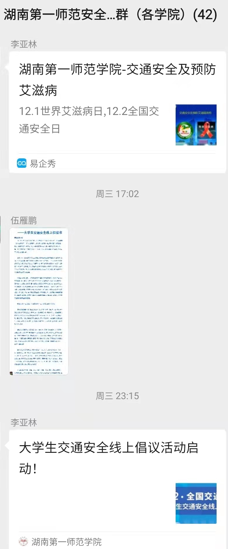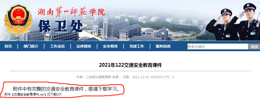 一是通过BETVLCTOR伟德在线微信公众号、微信群、QQ群等网络平台向全校师生推送公安部交通管理局的122“全国交通安全日”相关学习内容,并利用校园LED电子显示屏等宣传载体,滚动播放“全国交通安全日”宣传标语;二是在保卫处官方网站上传交通安全教育课件,要求各二级学院下载后,以院为单位组织学生集中学习;三是于12月2日上午派出我校交通安全的具体责任人参加长沙市高新区在梅溪湖步步高新天地东北角广场举办的第十个“全国交通安全日”群众性主题宣传活动启动仪式,并由我校外国语学院19级英语1班学生朱意上台作代表发言。