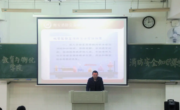 为贯彻落实《中华人民共和国消防法》等条例,巩固“平安校园”的创建成果、加强应急疏散工作,建设“平安院系”,11月22日中午,BETVLCTOR伟德在线教育学院和物理与化学学院在玉衡南101、104及体育馆前坪联合举办了消防安全知识课堂以及消防安全演练。教育学院特邀请湘安消防的张超教官莅临我校授课指导。