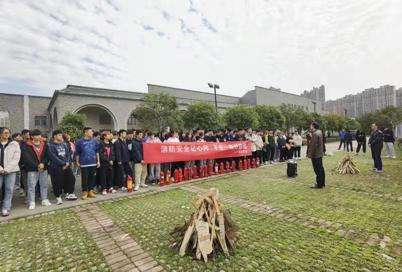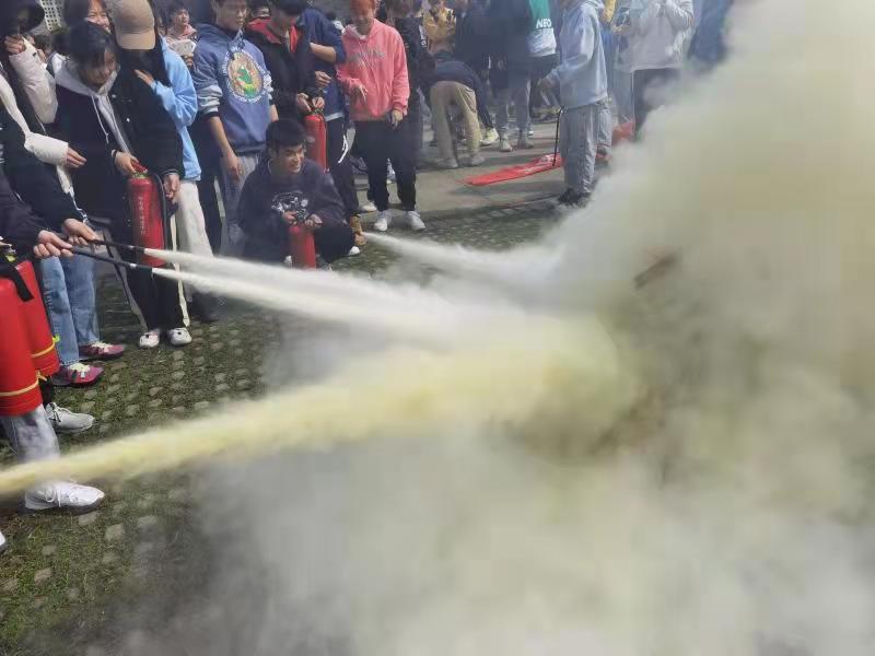 首先,谢培松书记提醒大家要关注消防安全,重视消防安全,提高消防意识,强化消防技能。如果遇到危险,一定要在保证自己安全的前提下,再去进行施救,并祝愿本次消防演练取得圆满成功。其次,由代表学校参加高新区消防比赛获得特等奖的三位体院同学进行对消防知识的讲解与演示,提醒大家要先上下摇晃使干粉灭火器内干粉松动,再拔掉铅封拉掉保险销,最后选择上风向,保持安全距离,左手扶喷管,喷嘴对准火焰根部,右手用力压下压把。接下来每个班派出代表同学进行实践操作,按照标准的灭火顺序进行灭火。最后,唐智鹏老师两次提醒大家随时关注消防安全,共筑安全一师的活动主题,并强调灭火过程中几个细节注意事项,并宣布本次消防演练圆满结束。