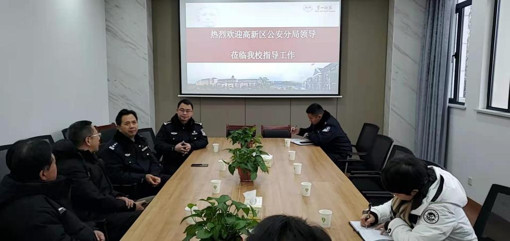 2021年1月7日上午,长沙市高新区公安分局党委副书记、政委黄英富在麓谷派出所所长李钢、副所长崔朋飞的陪同下来到我校,就我校校园安全稳定工作进行了深入座谈。我校负责安全工作的副校长刘宇,以及保卫处长向前、副处长罗燕、安全科长姚新出席了此次座谈会。