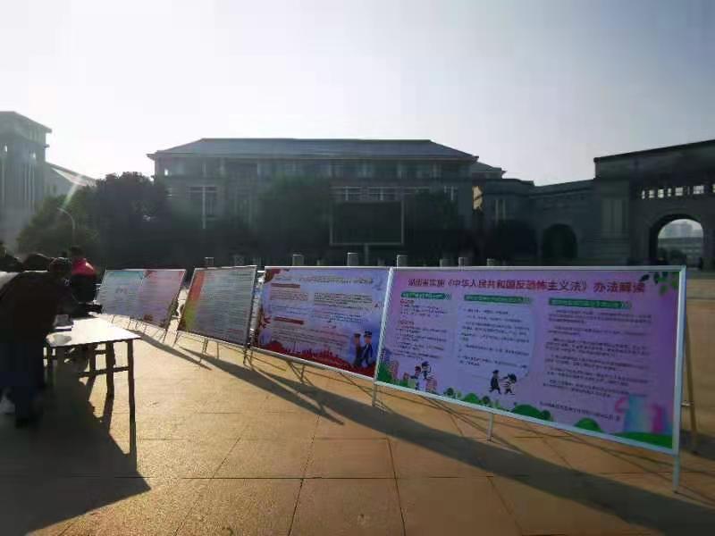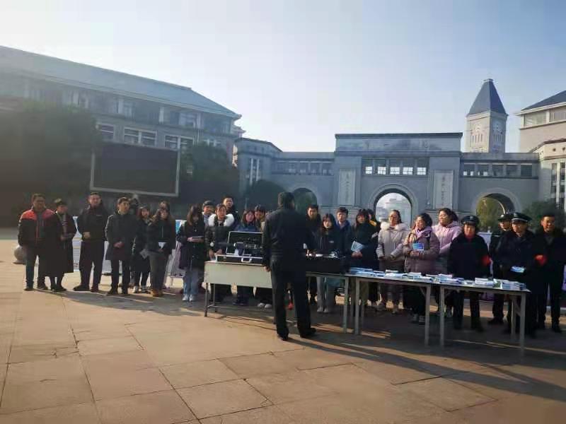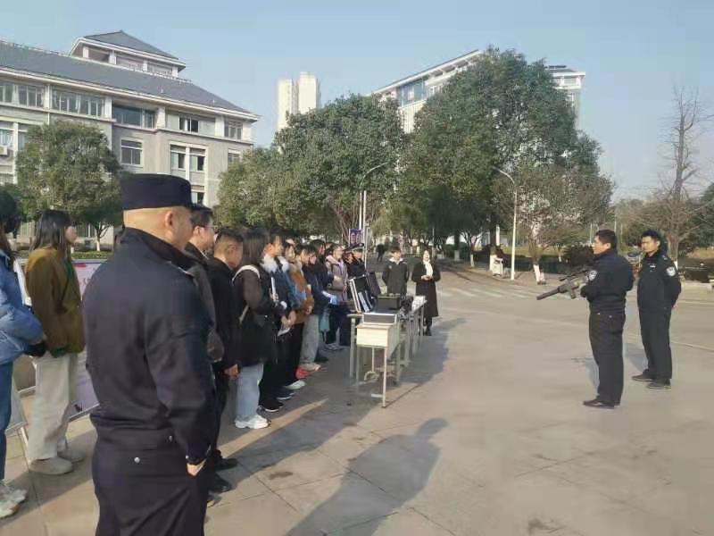为进一步提高我校师生的反恐意识,12月22日上午,我校保卫处特邀高新区公安分局杨所长、麓谷派出所崔所长在东方红校区开展反恐宣传活动。保卫处副处长罗燕、安全科全体老师、各学院师生代表及相关部门负责人参加了本次活动。