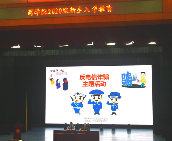 9月25日晚七点,由校保卫处主办,商学院承办,麓谷派出所协办的针对大一新生的“反电信网络诈骗”讲座在田汉剧场举办。保卫处副处长罗燕、商学院党总支副书记李辉华、教官以及全体大一新生参加了此次讲座。