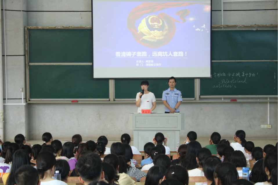 为切实增强新生安全防范意识,9月8日下午,外国语学院邀请湖南省公安厅政治部宣传处科长禹亚钢警官为全体新生上了一堂别开生面的安全教育课。