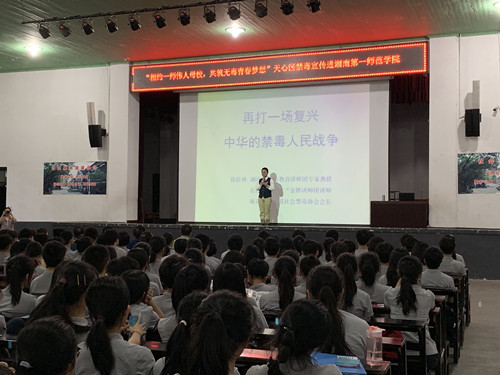 5月29日晚, “相约一代伟人母校,共筑无毒青春梦想”禁毒讲座在城南书院校区大礼堂举行。本次讲座是城南书院与天心区禁毒办携手举行的系列禁毒活动之一。军中演讲家、湖南省演讲协会副会长、国防科技大学教授徐佐林为同学们带来了一场以“再打一场复兴中华的禁毒人民战争”为主题的讲座。
