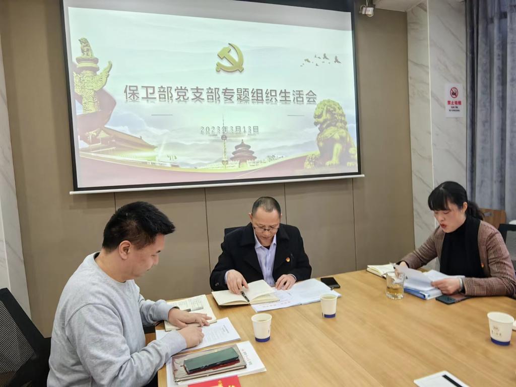 3月13日下午,保卫部党支部在104会议室召开2022年度专题组织生活会。机关党委委员张福国同志到会指导。会议由党支部书记李亚林主持,党支部全体党员参加会议。