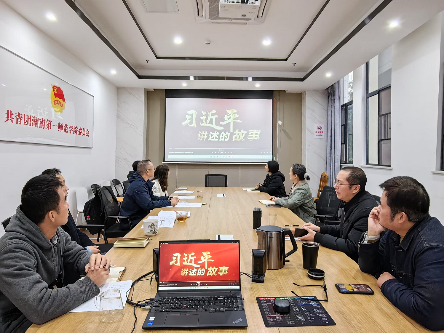 会上,全体党员集体观看了习近平讲述的故事《红楼星火燃》。