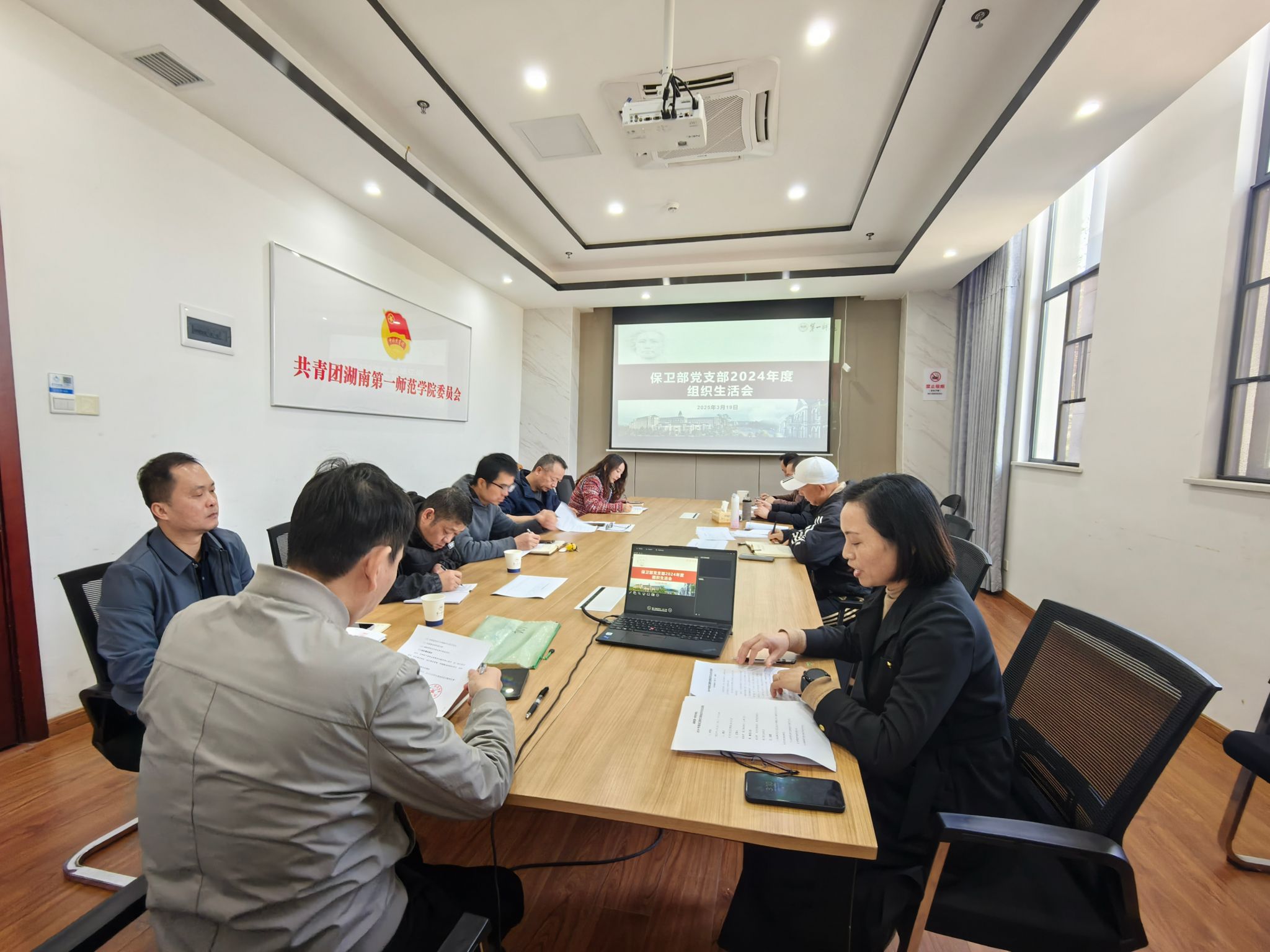 3月19日下午,保卫部党支部召开2024年度组织生活会,学校机关党委委员、宣传部长欧阳斐到会指导。支部全体党员参加会议,党支部书记成海英同志主持会议。