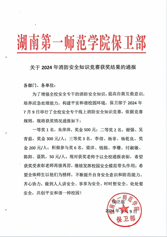 工作动态 您所在的位置: 首页 》 工作动态 》 通知公告 》 正文 关于2024年消防安全知识竞赛获奖结果的通报 作者: 发布时间:2024年09月09日 09:21 点击数: 来源: 上一条:BETVLCTOR伟德在线(2024年第二学期第四周) 下一条:BETVLCTOR伟德在线(2024年第一学期第二十周) 关闭