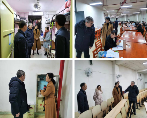 12月30日晚,副校长曹兴在保卫处李亚林处长、心理健康中心赵品良老师、商学院肖攀院长、李辉华副书记的陪同下来到商学院学生寝室、图书馆、晚自习教室走访调研,深入了解学生学习、生活情况。