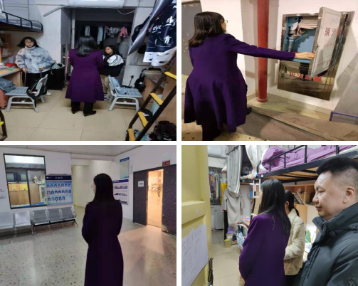 工作动态 您所在的位置: 首页 》 工作动态 》 正文 副校长蒋蓉深入学生公寓 了解学生生活及安全问题 作者: 发布时间:2021年12月25日 12:10 点击数: 来源: 2021年12月24日晚7点,分管学生与安全保卫工作的副校长蒋蓉、保卫处副处长伍雁鹏走访了学生宿舍5栋,对学生的学习、生活及安全问题表示关心。随后又前往体育馆,对馆内的消防、电路等设施进行检查,排查可能存在的安全隐患。之后又来到形体房,蒋蓉副校长对同学们的课后锻炼表示肯定,适当的锻炼、积极参与课后活动有利于身心健康发展。 上一条:城南书院校区开展冬季安全大检查 下一条:我校荣获2021年度湖南省平安建设先进单位、安全生产和消防工作良好单位 关闭